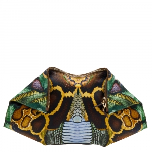 Alexander McQueen Black/Green Printed Fabric and Leather Medium De Manta Clutch