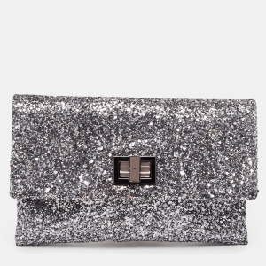 Anya Hindmarch Metallic Silver Crinkle Leather Scrooge Day Glitter Clutch