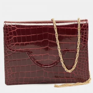 Aspinal Of London Burgundy Croc Embossed Leather Chain Clutch