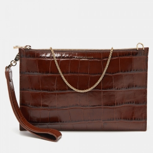 Aspinal Of London Brown Croc Embossed Leather Soho Wristlet Clutch