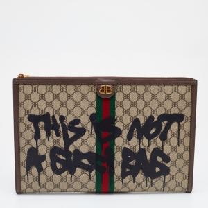 Gucci x Balenciaga Beige/Brown Supreme Canvas The Hacker Project Web Graffiti Laptop Pouch
