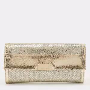 Jimmy Choo Chandra Gold Shimmer Perforated Leather Clutch
