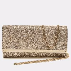 Jimmy Choo Gold Glitter Milla Chain Clutch