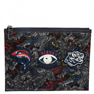Kenzo Black Tiger Print Coated Canvas and Patent Leather Wristlet Pouch