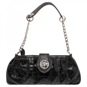 Kenzo Black Grained Leather Eye Embroidered Clutch