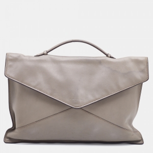 Lancel Grey Leather Envelope Flap Clutch Bag