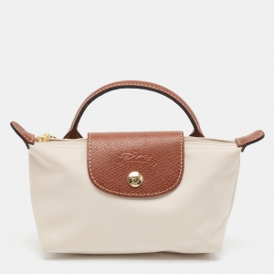 Longchamp Off White Nylon Le Pliage Handle Pouch
