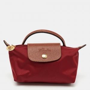 Longchamp Dark Red/Brown Nylon and Leather Le Pliage Handle Pouch