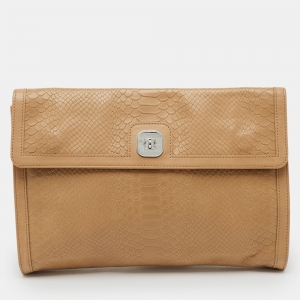 Longchamp Beige Croc Embossed Leather Oversized Clutch