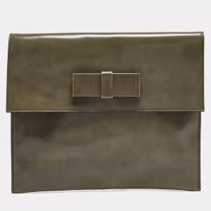 Marni Olive Green Glossy Leather Bow Clutch