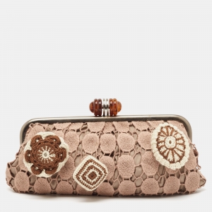 Marni Dusty Pink Crochet Embellished Frame Clutch