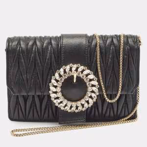 Miu Miu Black Matelassé Leather Chain Clutch Bag