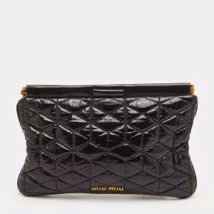 Miu Miu Black Quilted Vitello Shine Leather Pochette Bag