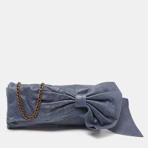 RED Valentino Blue Leather Bow Chain Clutch