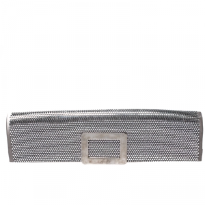 Roger Vivier Metallic Silver Satin Belle Clutch