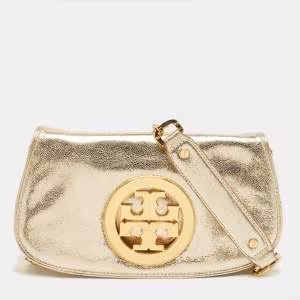 Tory Burch Metallic Gold Leather Reva Chain Clutch