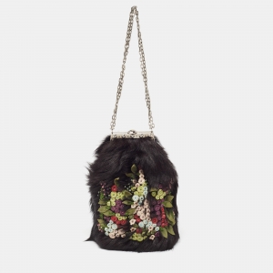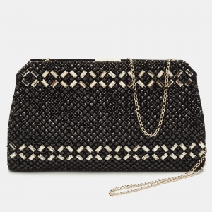 Valentino Black Mesh Embellished Frame Chain Clutch