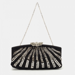 Valentino Black Satin Beaded Crystal Embellished Clutch