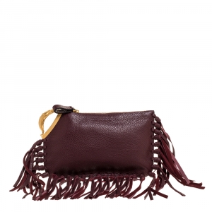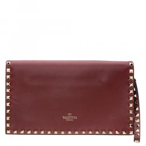 Valentino Burgundy Leather Rockstud Va Va Voom Chain Clutch