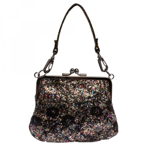 Vivienne Westwood Multicolor Lace and Glitter Kiss Lock Chain Clutch