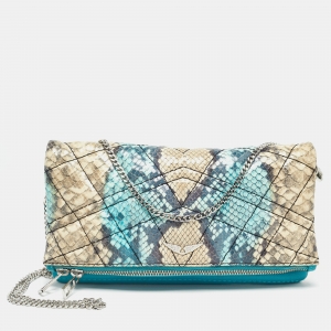 Zadig & Voltaire Multicolor Python Embossed Leather Rock Foldover Chain Clutch