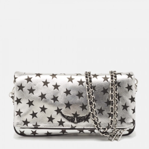 Zadig & Voltaire Silver/Black Leather Circus Star Rock Foldover Clutch Bag