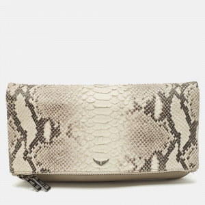 Zadig & Voltaire Grey Python Embossed Leather Rock Foldover Clutch Bag