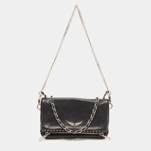 Zadig and Voltaire Black Glazed Leather Rock Chain Clutch