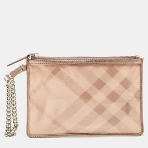 Burberry Beige/Metallic Nova Check PVC and Patent Leather Zip Wristlet Clutch