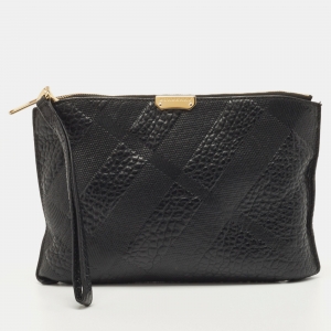 Burberry Black Nova Check PVC and Leather Zip Wristlet Clutch