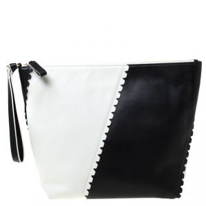 Diane von Furstenberg White/Black Leather Wristlet Clutch