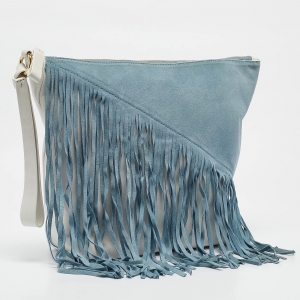 Diane Von Furstenberg Slate Blue/Ivory Leather and Suede Fringe Wristlet Bag
