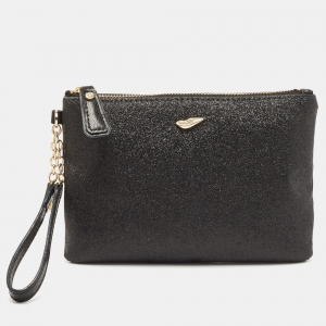 Diane Von Furstenberg Black Glitter Fabric Glitterati Wristlet Pouch