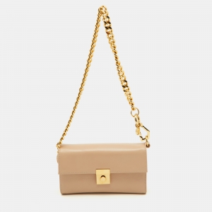 Giuseppe Zanotti Beige Leather Chain Wristlet Clutch