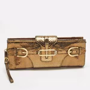Jimmy Choo Metallic Gold Python Tulita Wristlet Clutch