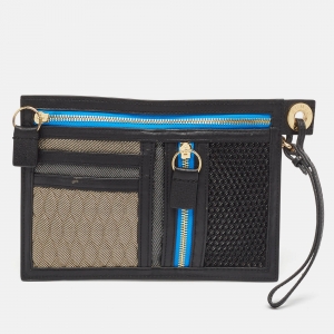 Kenzo Black/Multicolor Leather and Fabric Organizer Pouch