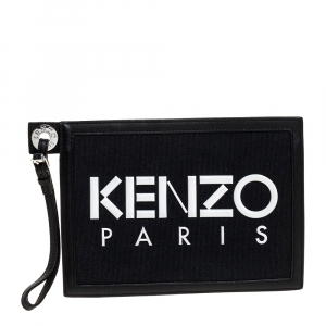 Kenzo Black Canvas and Leather Wristlet Clutch
