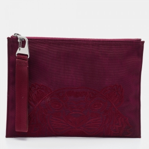 Kenzo Burgundy Canvas Tiger Embroidery Wristlet Pouch