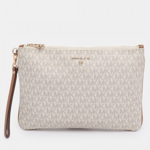Michael Kors Cream/Brown Coated Canvas and Leather Slater 2-in-1 Wristlet Clutch