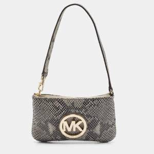 MICHAEL Michael Kors Grey Python Effect Suede Wristlet Zip Pouch