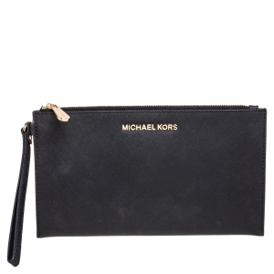 MICHAEL Michael Kors Black Leather Jet Set Wristlet Pochette