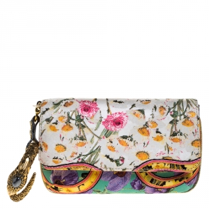 Roberto Cavalli Multicolor Floral Print Satin Serpent Bracelet Wristlet Clutch