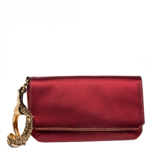 Roberto Cavalli Red/Gold Satin and Leather Serpent Wristlet Clutch