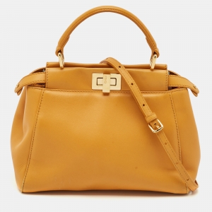 Fendi Orange Leather Mini Peekaboo Top Handle Bag