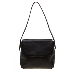 Bally Black Leather Double Pocket Flap Shoulder Bag