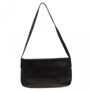 Bally Black Croc Embossed Leather Vintage Flap Shoulder Bag