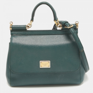 Dolce & Gabbana Apple Green Leather Large Miss Sicily Top Handle Bag