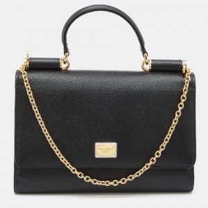 Dolce & Gabbana Black Leather Large Miss Sicily Top Handle Bag