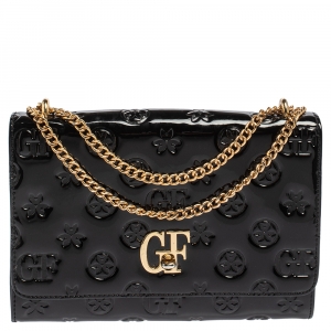 Gianfranco Ferre Black Patent Leather Flap Chain Crossbody Bag