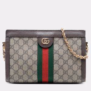 Gucci Brown Small GG Supreme Web Ophidia Chain Crossbody